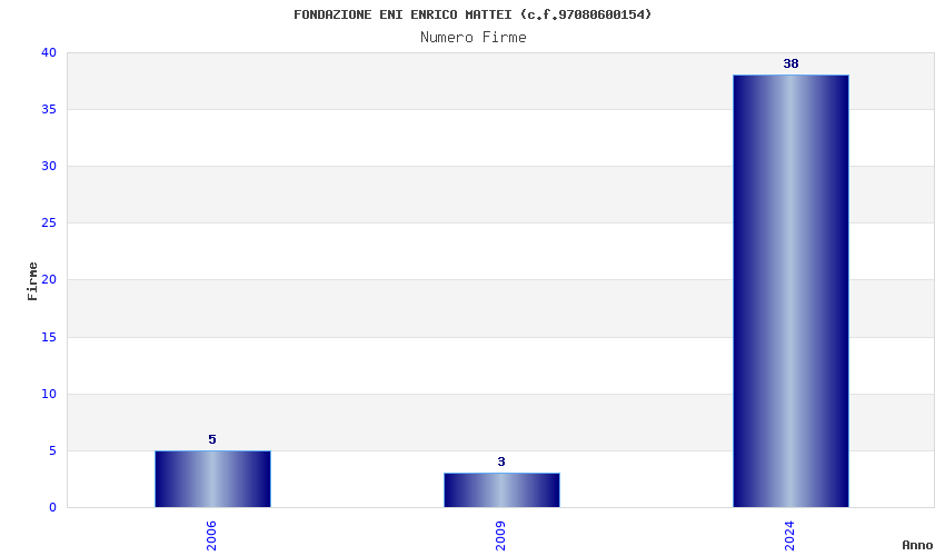 | Anno | Firme | Importi | Media | Naz. | Reg. | Prov. | Comu. |