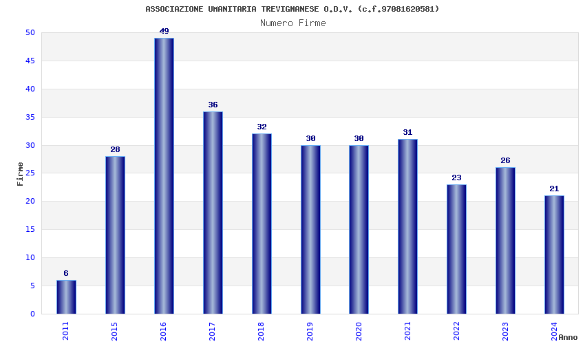 | Anno | Firme | Importi | Media | Naz. | Reg. | Prov. | Comu. |