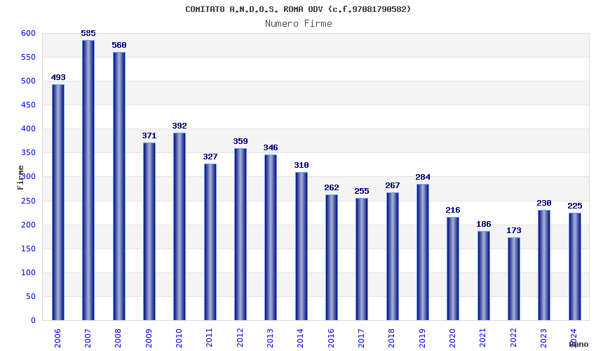 | Anno | Firme | Importi | Media | Naz. | Reg. | Prov. | Comu. |