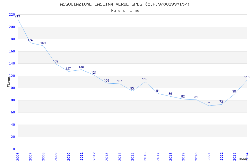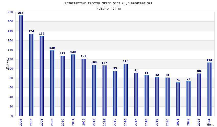 | Anno | Firme | Importi | Media | Naz. | Reg. | Prov. | Comu. |