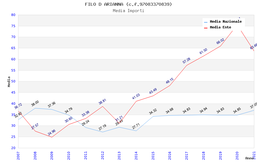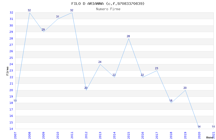 | Anno | Firme | Importi | Media | Naz. | Reg. | Prov. | Comu. |