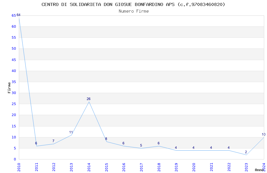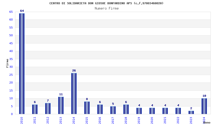 | Anno | Firme | Importi | Media | Naz. | Reg. | Prov. | Comu. |