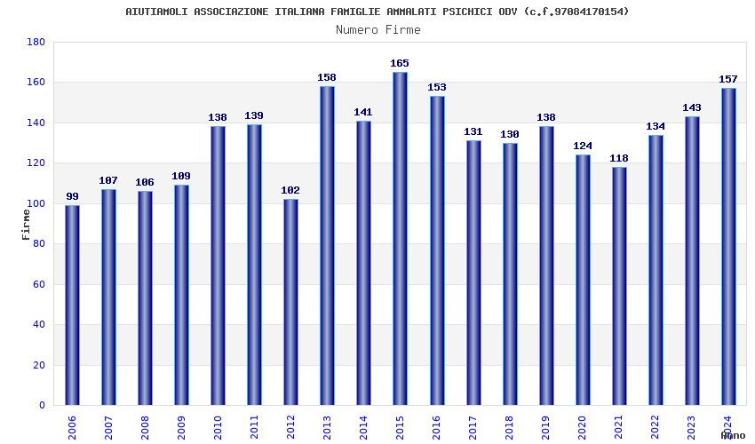 | Anno | Firme | Importi | Media | Naz. | Reg. | Prov. | Comu. |