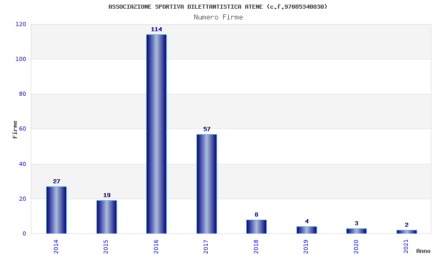 | Anno | Firme | Importi | Media | Naz. | Reg. | Prov. | Comu. |