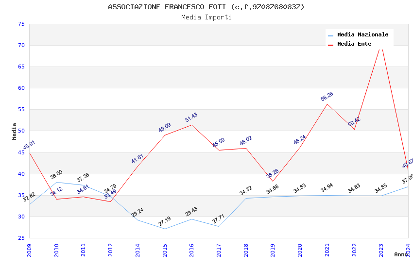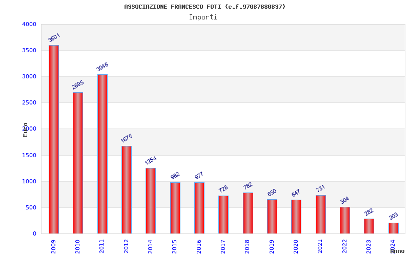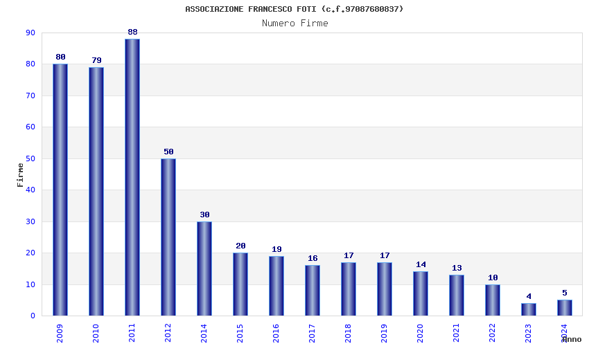 | Anno | Firme | Importi | Media | Naz. | Reg. | Prov. | Comu. |