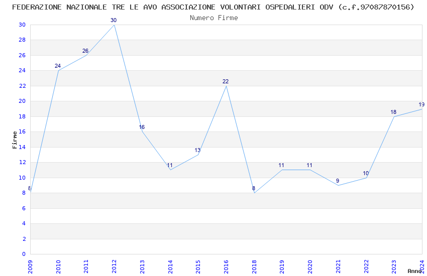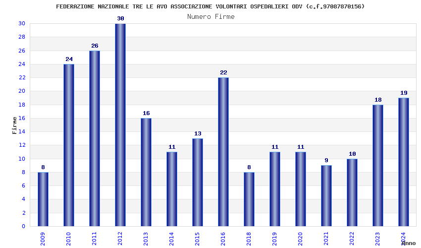 | Anno | Firme | Importi | Media | Naz. | Reg. | Prov. | Comu. |