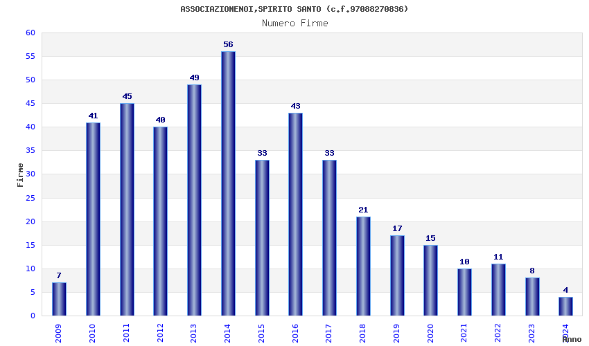 Anno Firme Importi Media Naz. Reg. Prov. Comu.