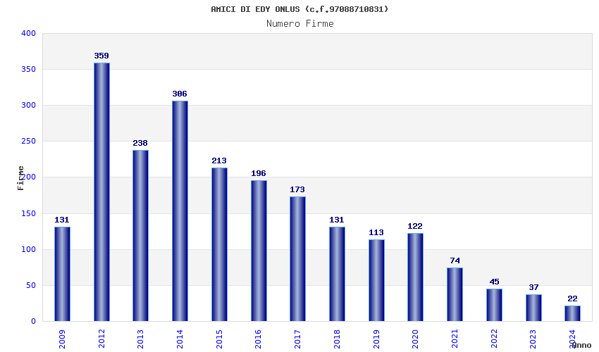 | Anno | Firme | Importi | Media | Naz. | Reg. | Prov. | Comu. |