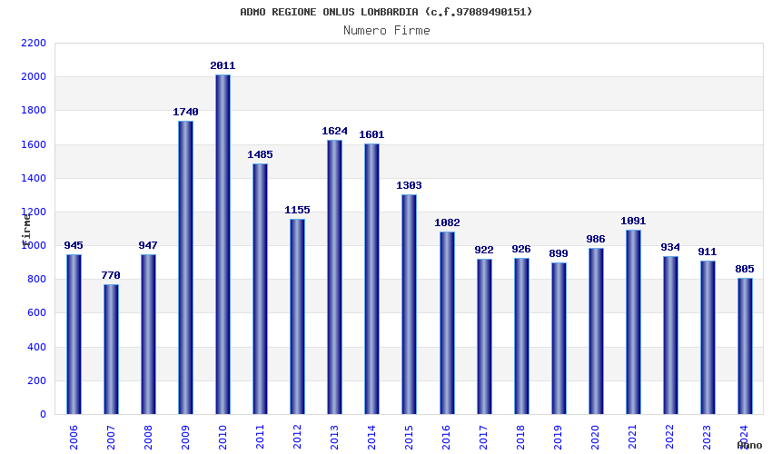 | Anno | Firme | Importi | Media | Naz. | Reg. | Prov. | Comu. |