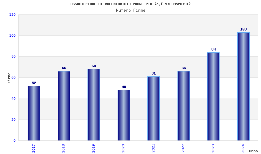 | Anno | Firme | Importi | Media | Naz. | Reg. | Prov. | Comu. |