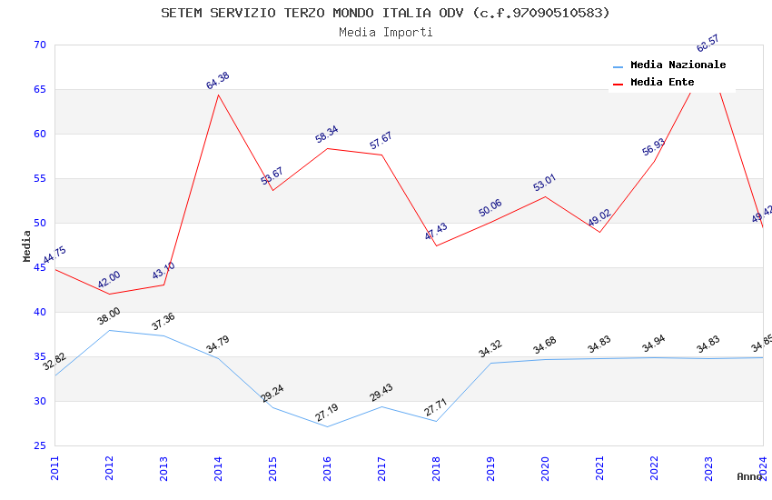| Anno | Firme | Importi | Media | Naz. | Reg. | Prov. | Comu. |