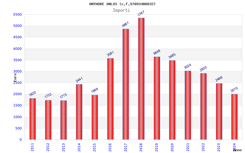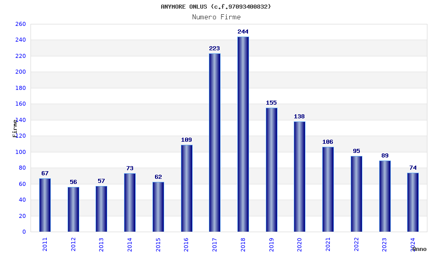 | Anno | Firme | Importi | Media | Naz. | Reg. | Prov. | Comu. |