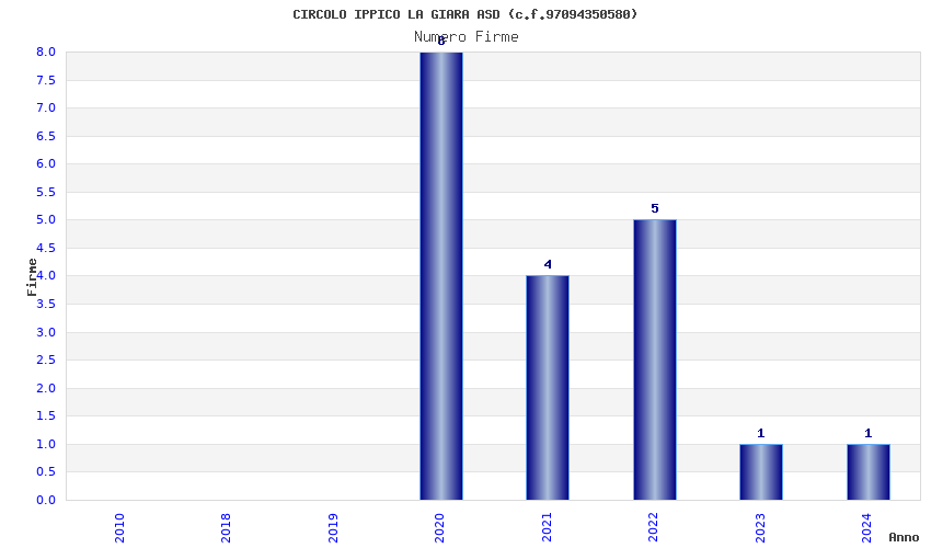 | Anno | Firme | Importi | Media | Naz. | Reg. | Prov. | Comu. |