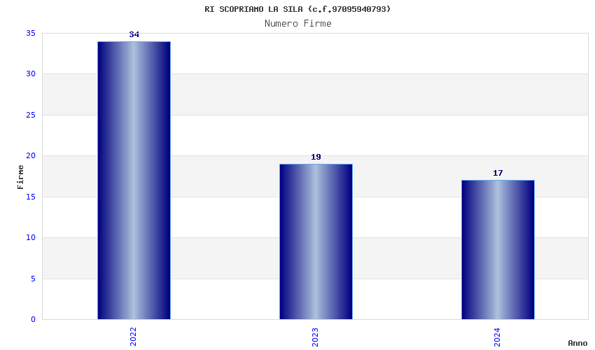 | Anno | Firme | Importi | Media | Naz. | Reg. | Prov. | Comu. |