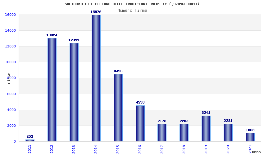 | Anno | Firme | Importi | Media | Naz. | Reg. | Prov. | Comu. |