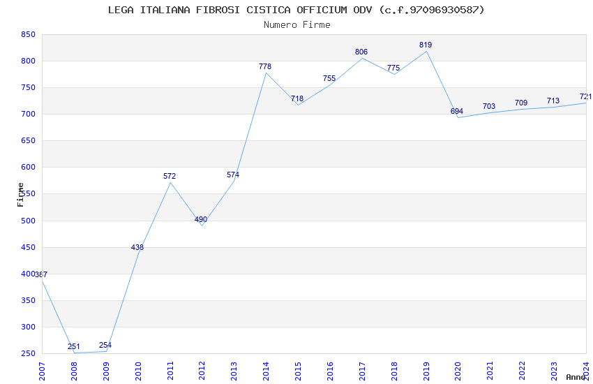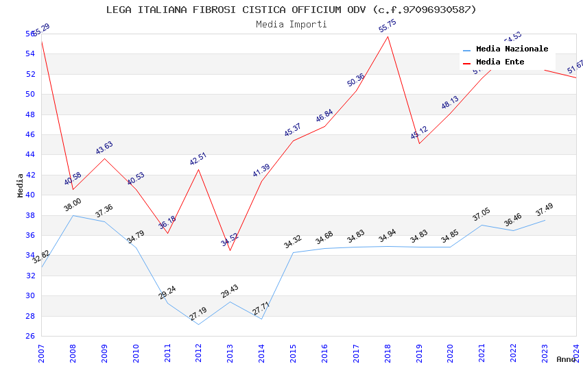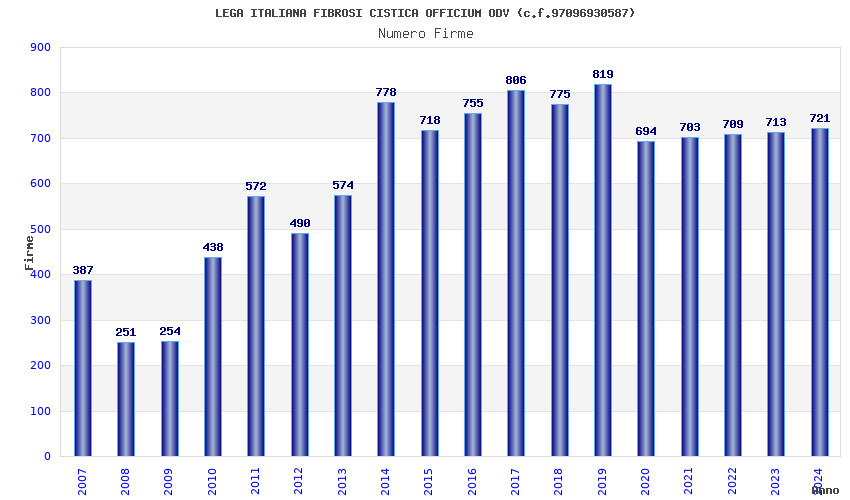 | Anno | Firme | Importi | Media | Naz. | Reg. | Prov. | Comu. |