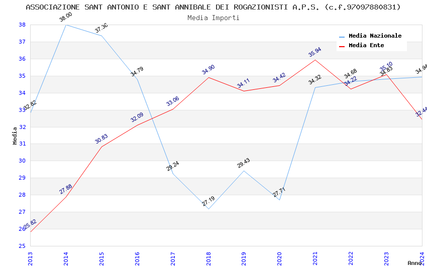 | Anno | Firme | Importi | Media | Naz. | Reg. | Prov. | Comu. |