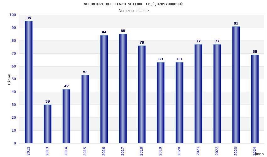 | Anno | Firme | Importi | Media | Naz. | Reg. | Prov. | Comu. |