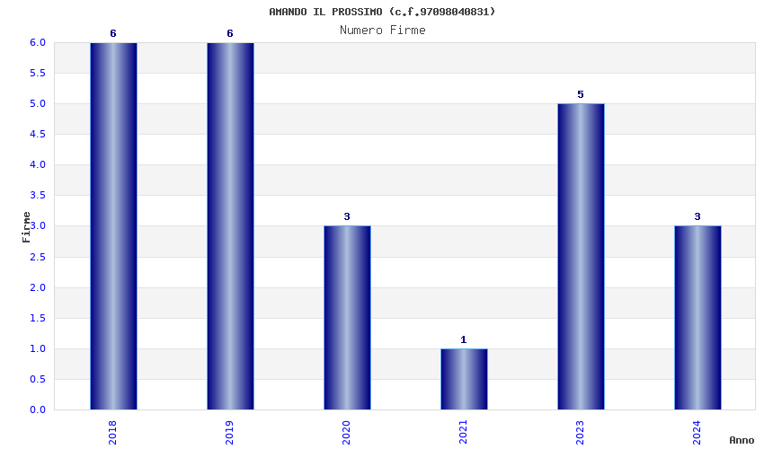 | Anno | Firme | Importi | Media | Naz. | Reg. | Prov. | Comu. |