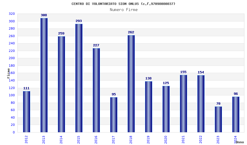 | Anno | Firme | Importi | Media | Naz. | Reg. | Prov. | Comu. |