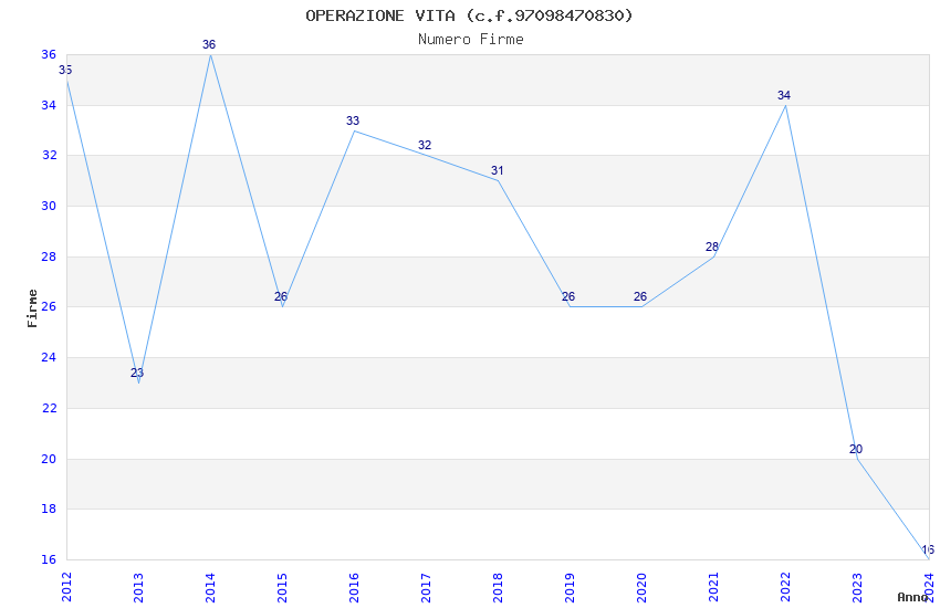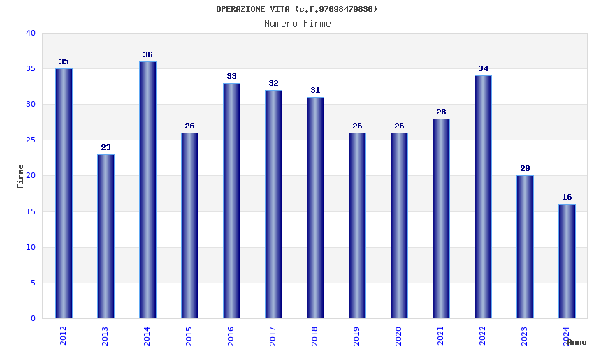 | Anno | Firme | Importi | Media | Naz. | Reg. | Prov. | Comu. |