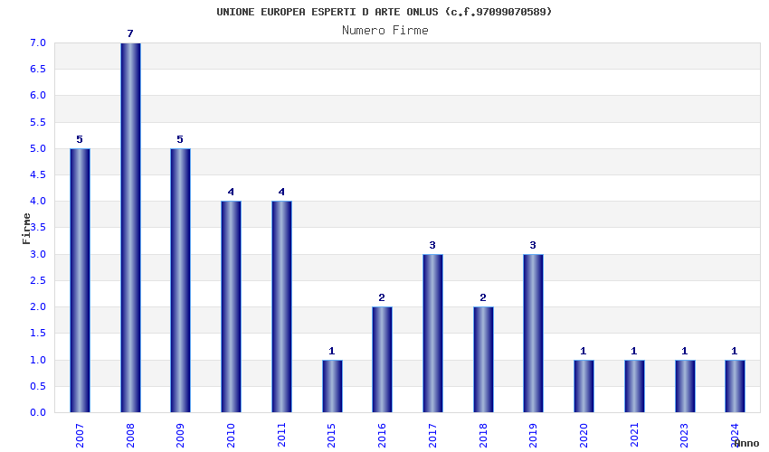 | Anno | Firme | Importi | Media | Naz. | Reg. | Prov. | Comu. |