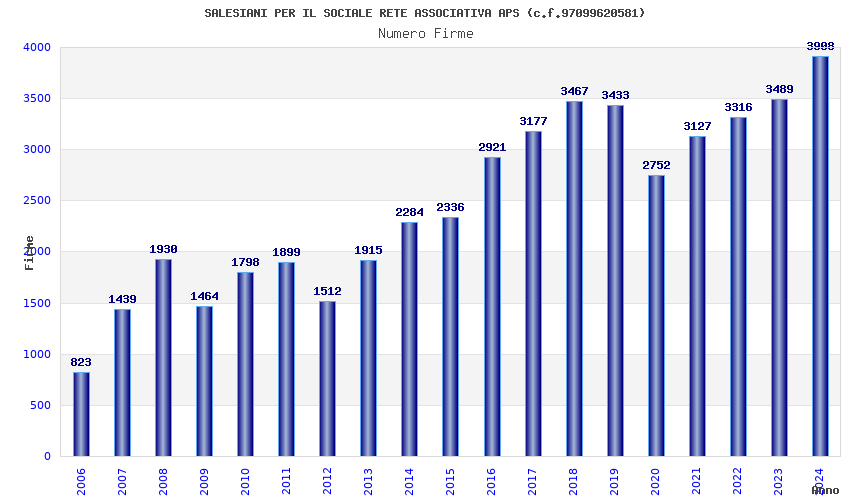 | Anno | Firme | Importi | Media | Naz. | Reg. | Prov. | Comu. |