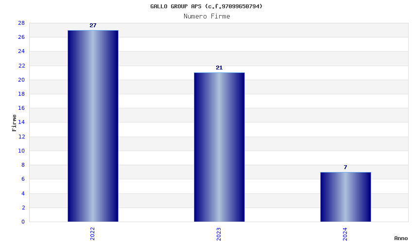 | Anno | Firme | Importi | Media | Naz. | Reg. | Prov. | Comu. |