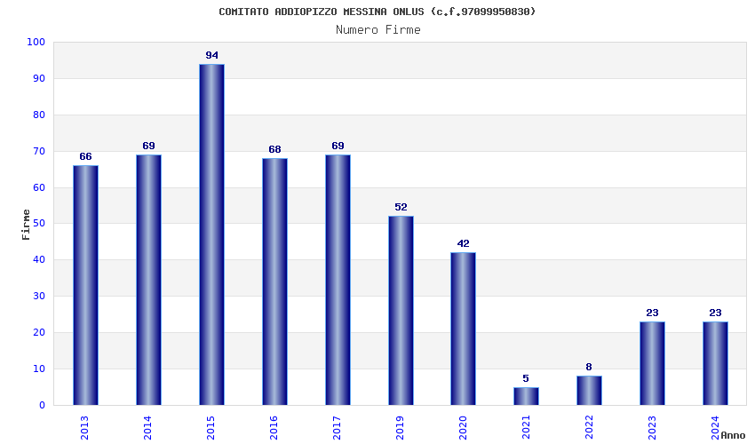 | Anno | Firme | Importi | Media | Naz. | Reg. | Prov. | Comu. |