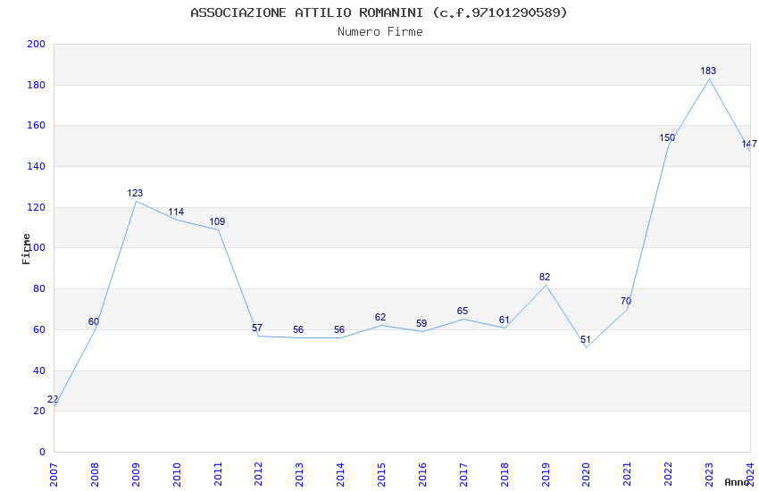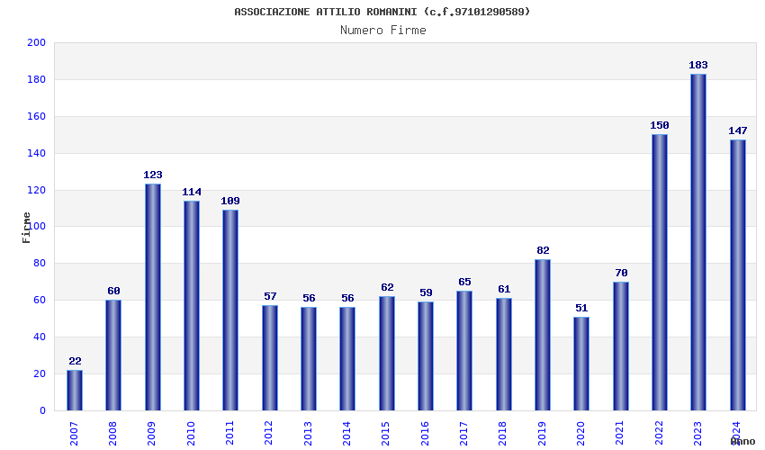 | Anno | Firme | Importi | Media | Naz. | Reg. | Prov. | Comu. |