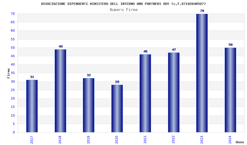 | Anno | Firme | Importi | Media | Naz. | Reg. | Prov. | Comu. |