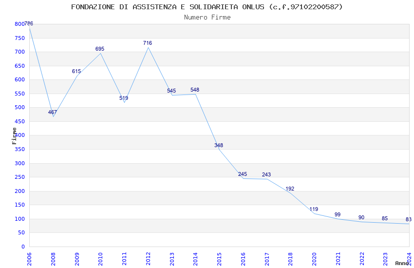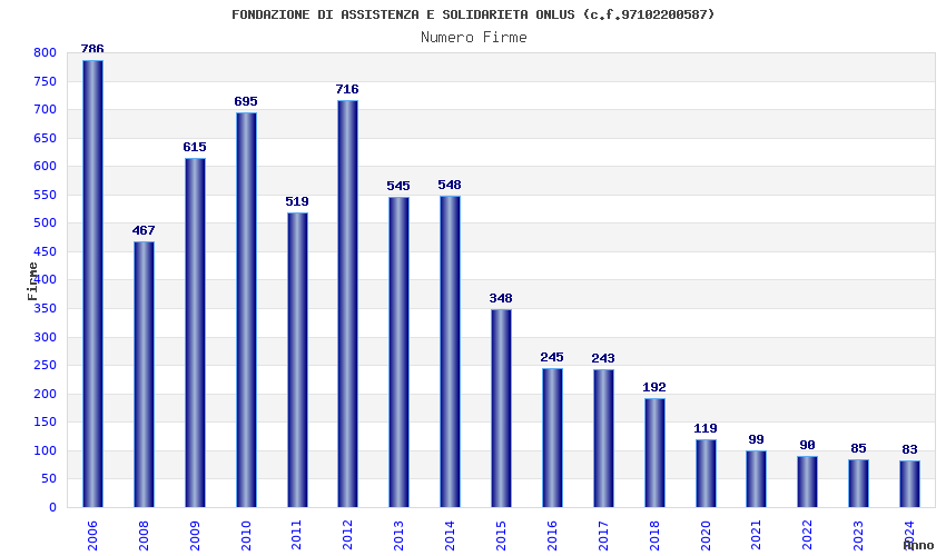| Anno | Firme | Importi | Media | Naz. | Reg. | Prov. | Comu. |