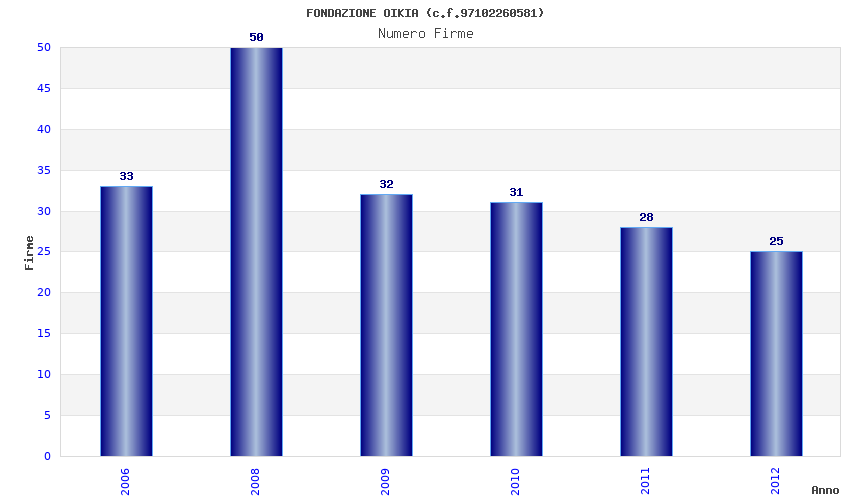 | Anno | Firme | Importi | Media | Naz. | Reg. | Prov. | Comu. |