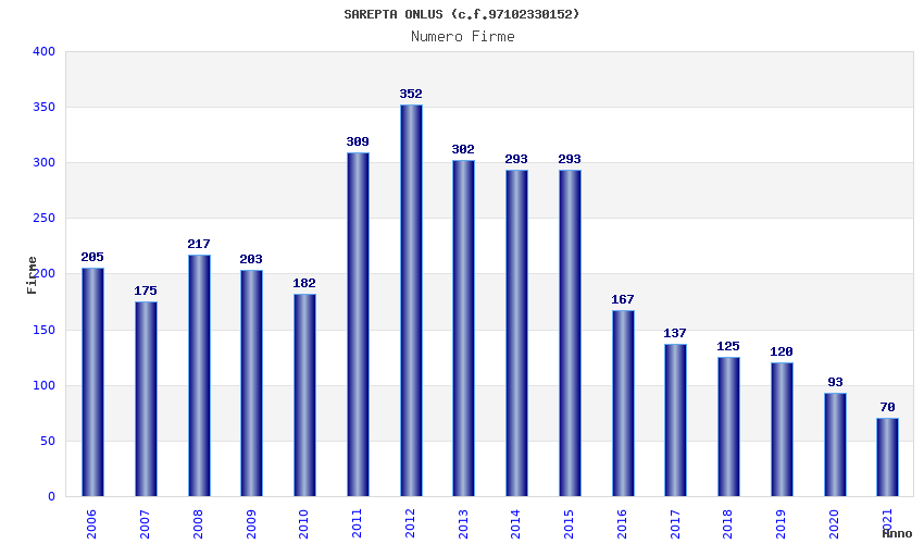 | Anno | Firme | Importi | Media | Naz. | Reg. | Prov. | Comu. |