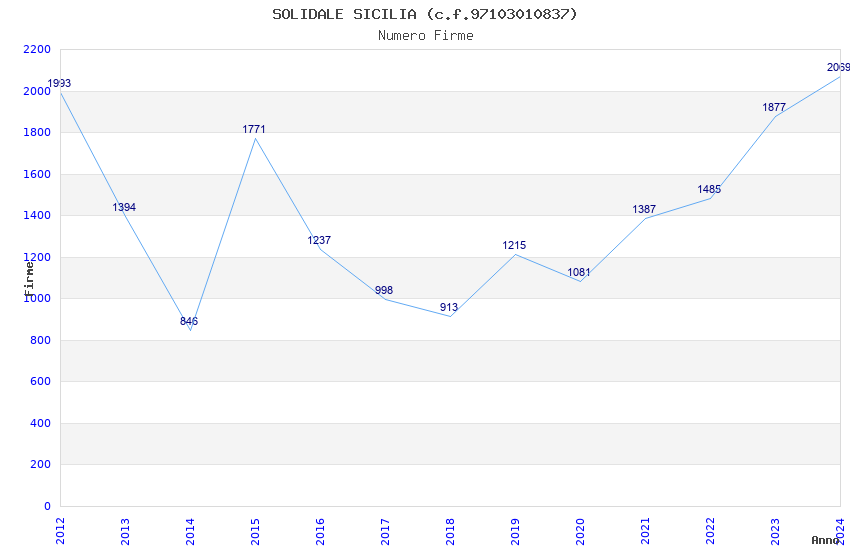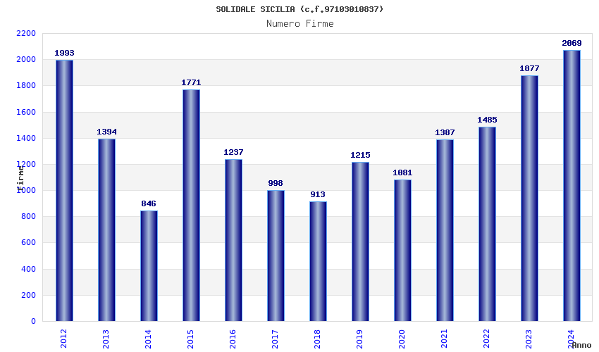 | Anno | Firme | Importi | Media | Naz. | Reg. | Prov. | Comu. |
