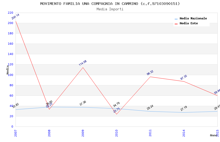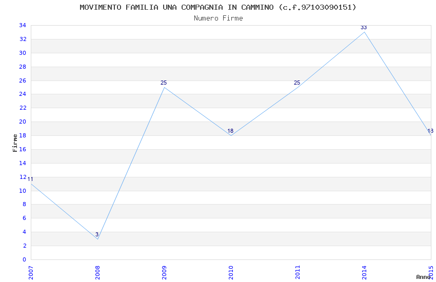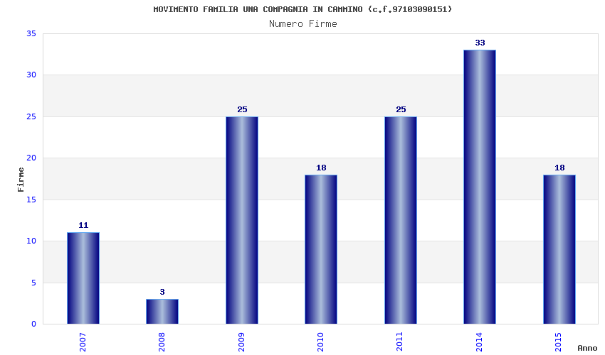 | Anno | Firme | Importi | Media | Naz. | Reg. | Prov. | Comu. |