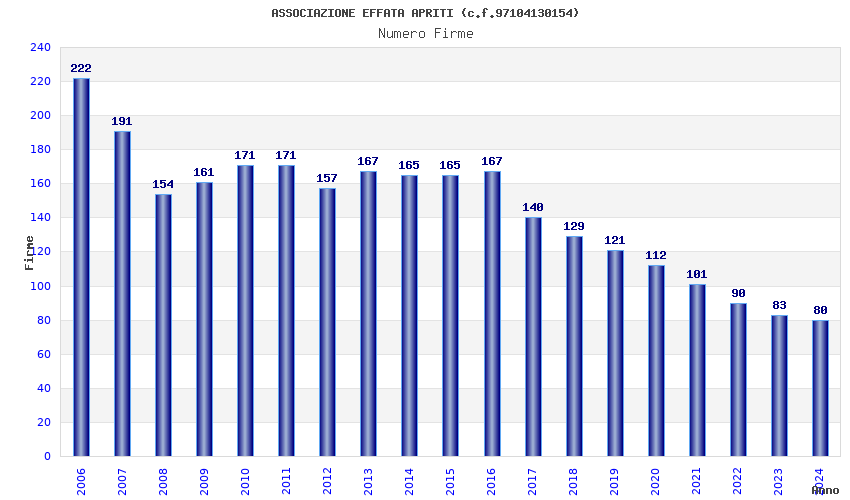 | Anno | Firme | Importi | Media | Naz. | Reg. | Prov. | Comu. |