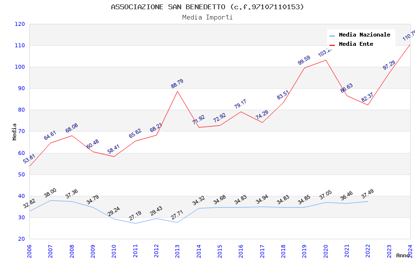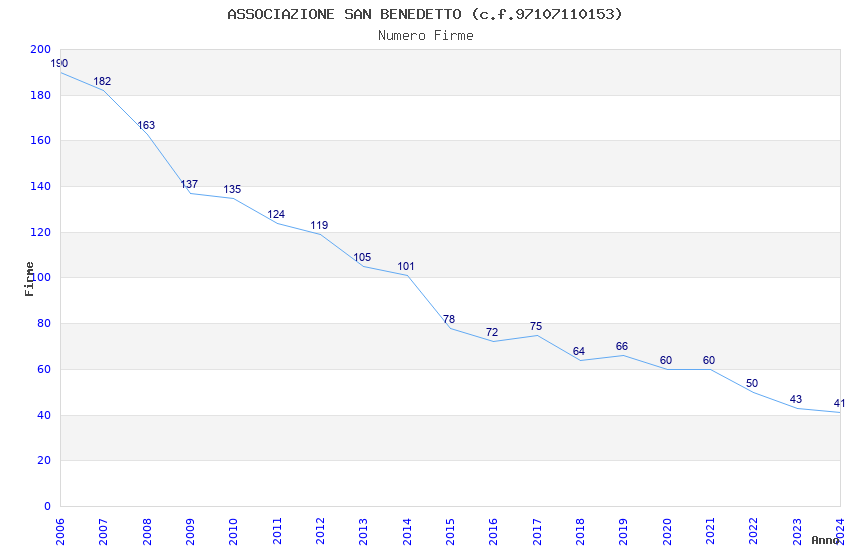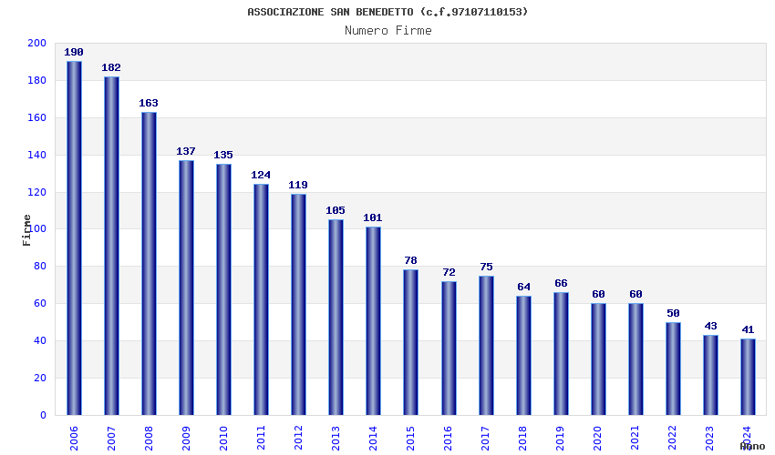 | Anno | Firme | Importi | Media | Naz. | Reg. | Prov. | Comu. |