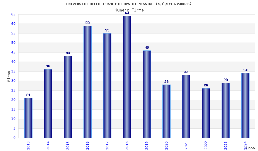 | Anno | Firme | Importi | Media | Naz. | Reg. | Prov. | Comu. |