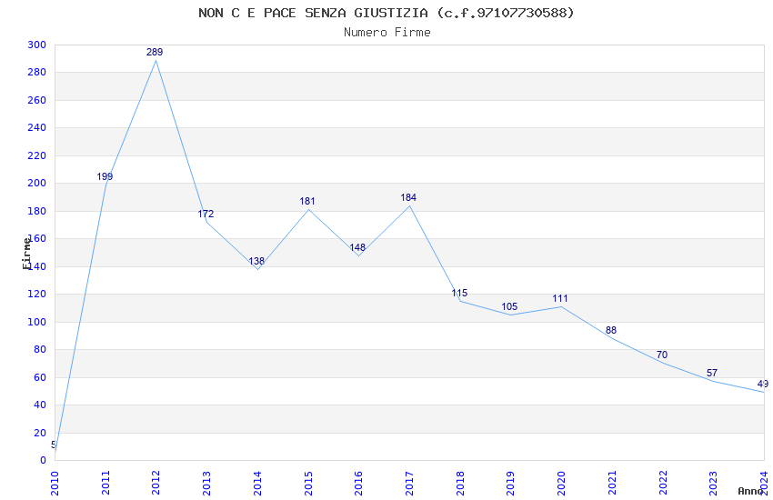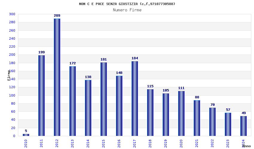 | Anno | Firme | Importi | Media | Naz. | Reg. | Prov. | Comu. |