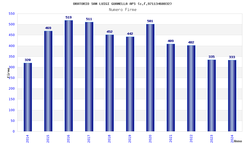 | Anno | Firme | Importi | Media | Naz. | Reg. | Prov. | Comu. |