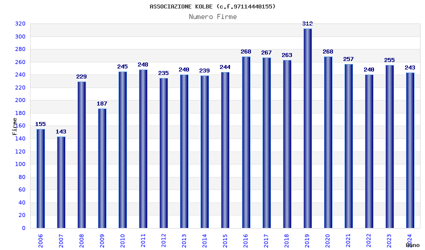 | Anno | Firme | Importi | Media | Naz. | Reg. | Prov. | Comu. |