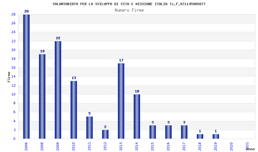 | Anno | Firme | Importi | Media | Naz. | Reg. | Prov. | Comu. |