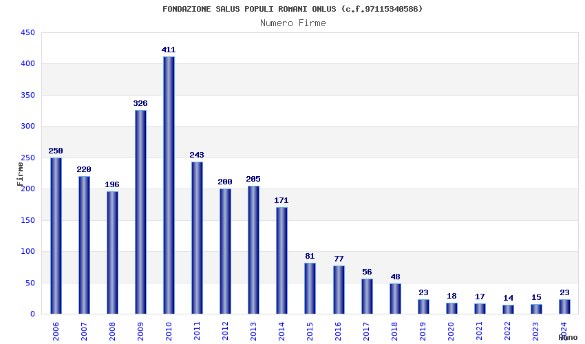 | Anno | Firme | Importi | Media | Naz. | Reg. | Prov. | Comu. |