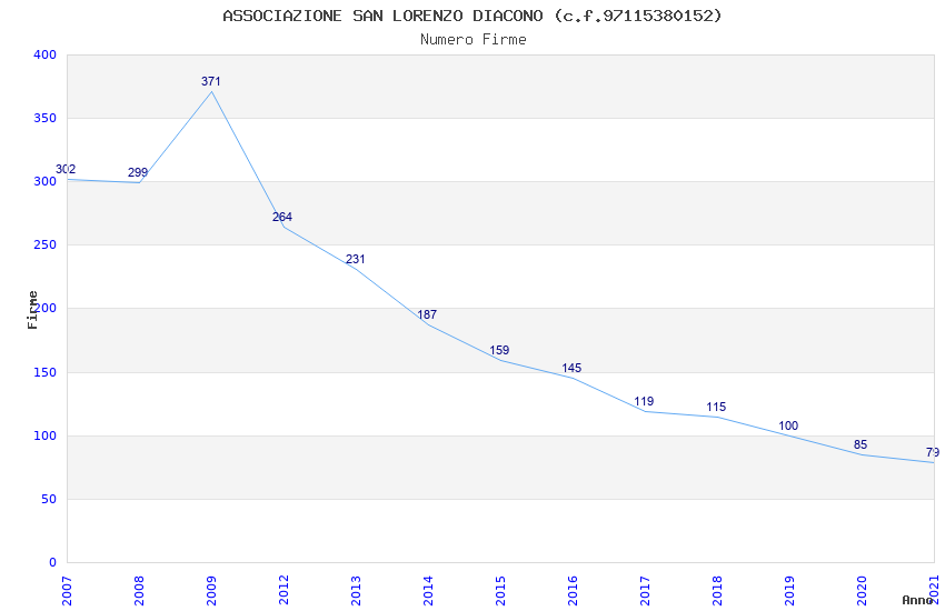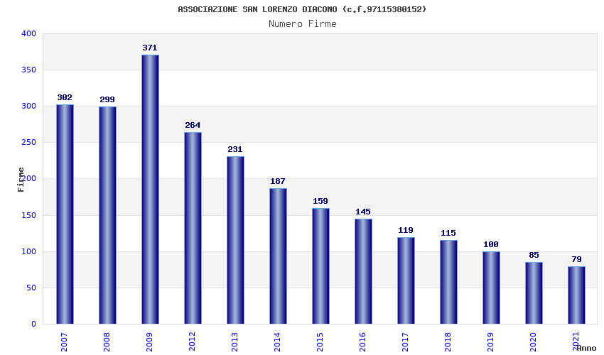 | Anno | Firme | Importi | Media | Naz. | Reg. | Prov. | Comu. |