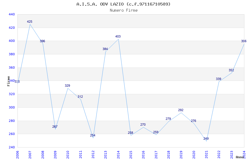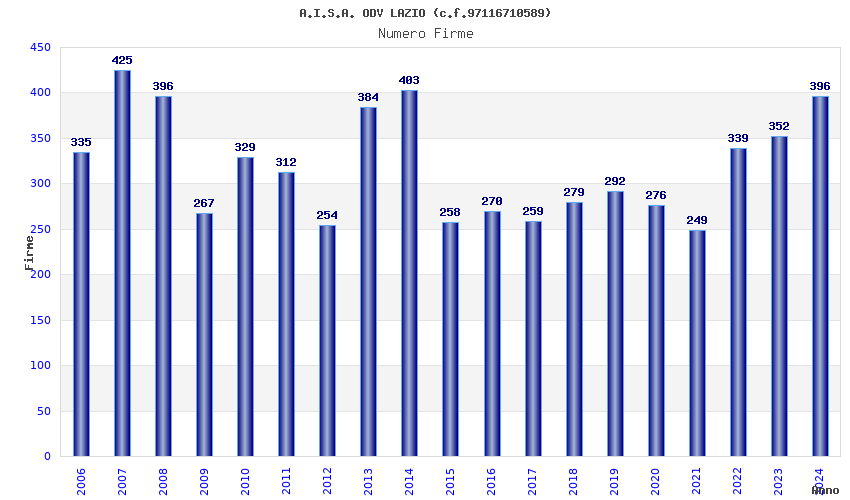 | Anno | Firme | Importi | Media | Naz. | Reg. | Prov. | Comu. |