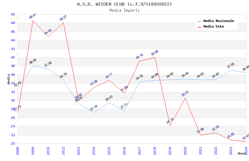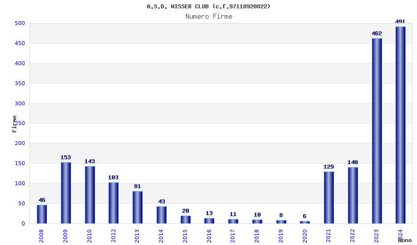 | Anno | Firme | Importi | Media | Naz. | Reg. | Prov. | Comu. |