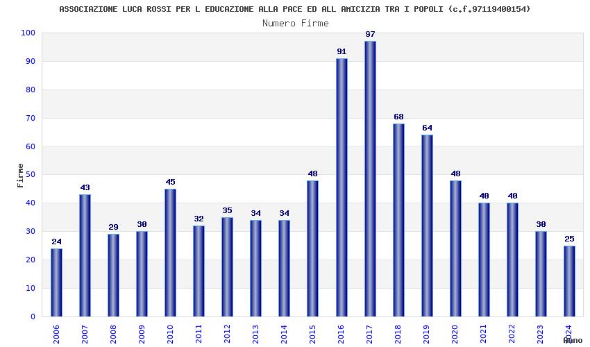 | Anno | Firme | Importi | Media | Naz. | Reg. | Prov. | Comu. |