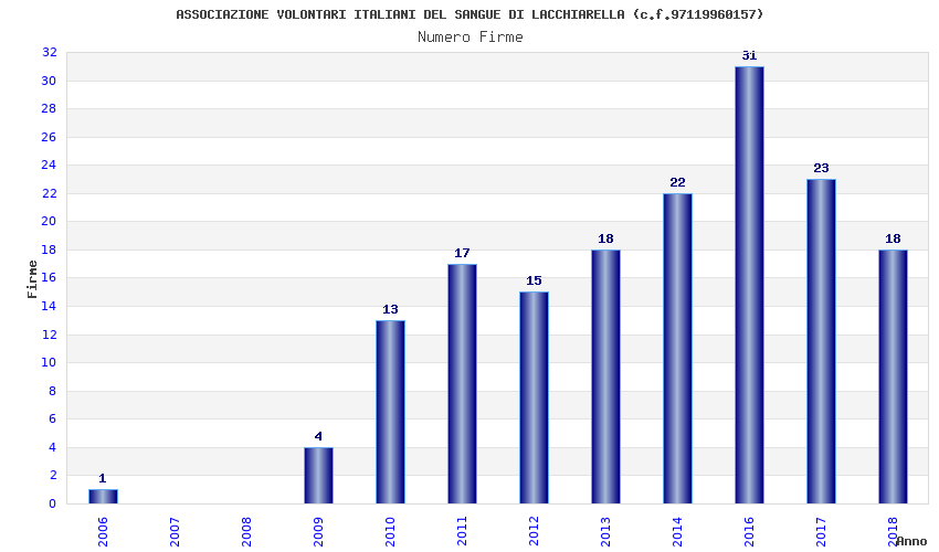| Anno | Firme | Importi | Media | Naz. | Reg. | Prov. | Comu. |
