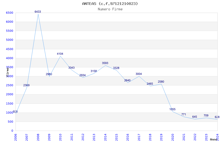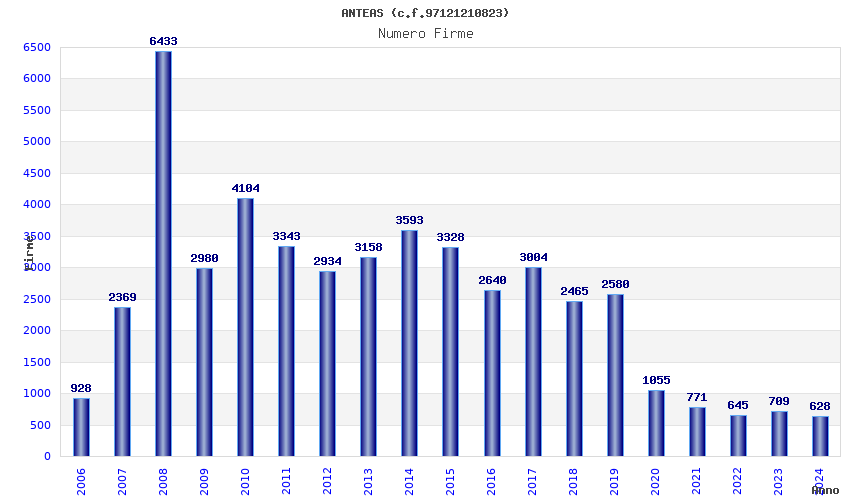 | Anno | Firme | Importi | Media | Naz. | Reg. | Prov. | Comu. |
